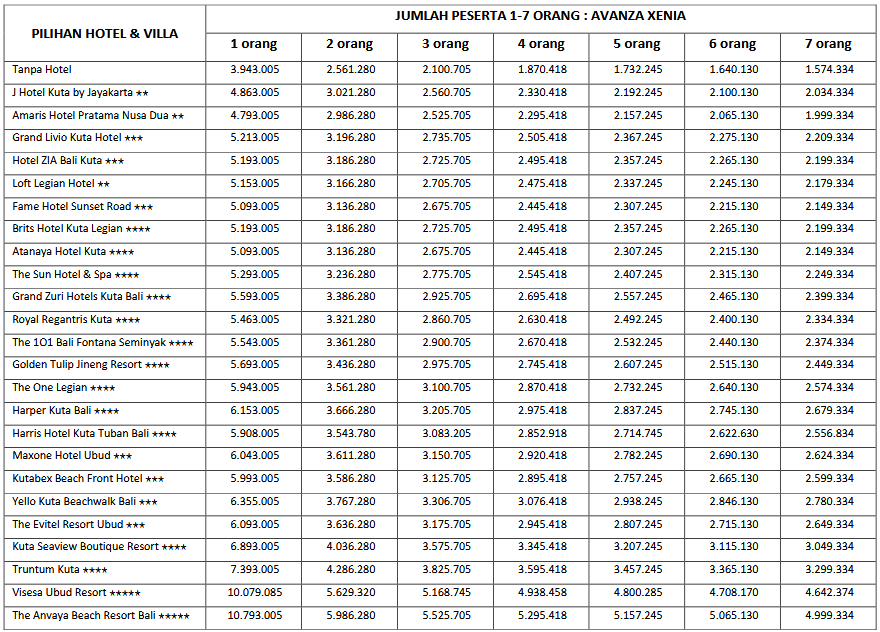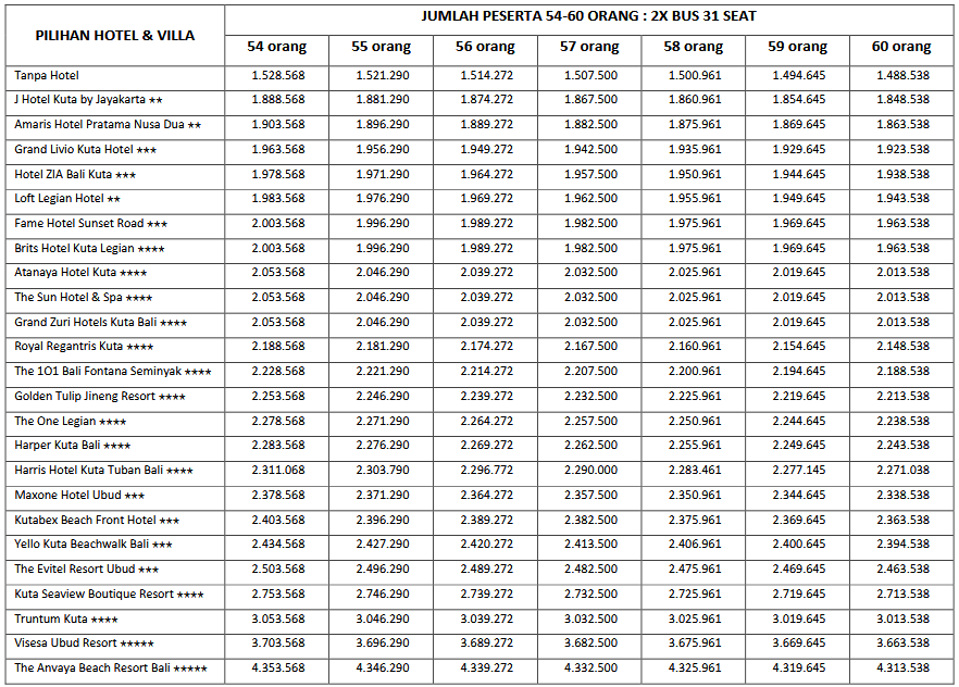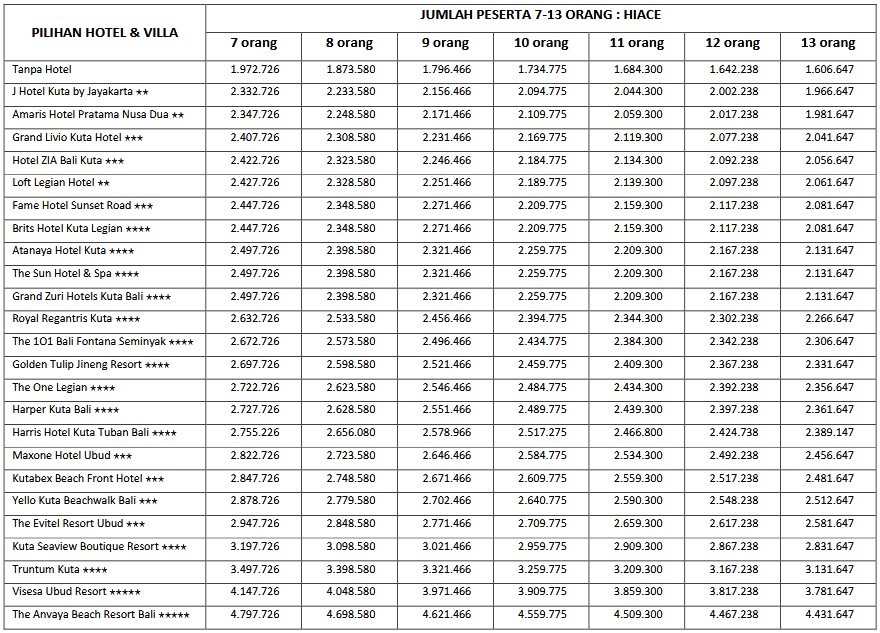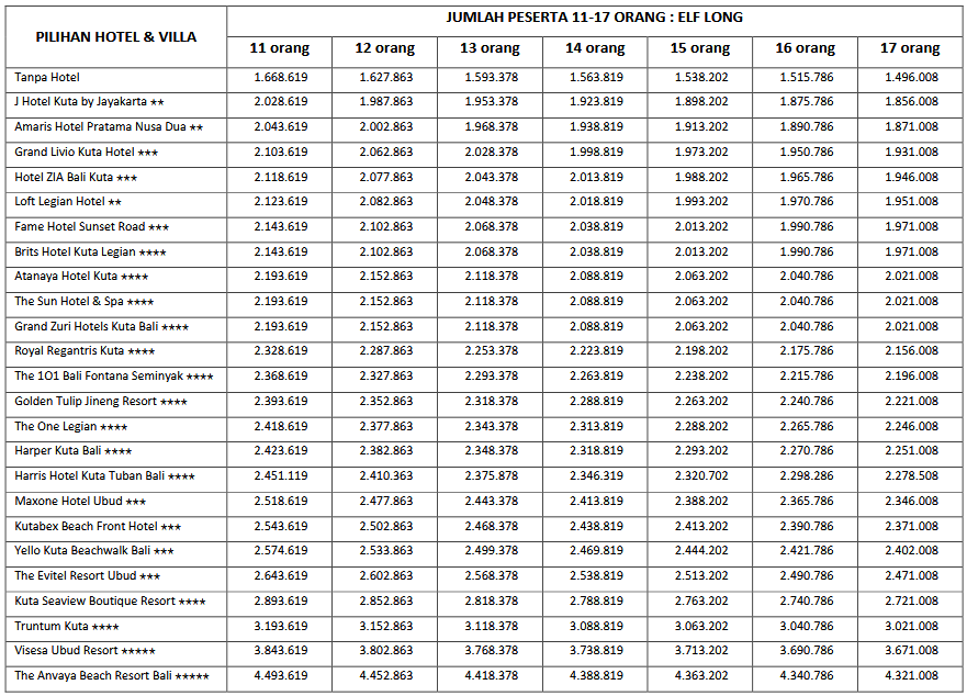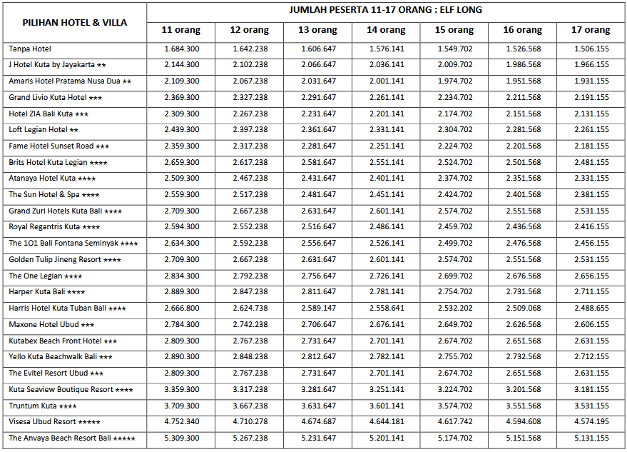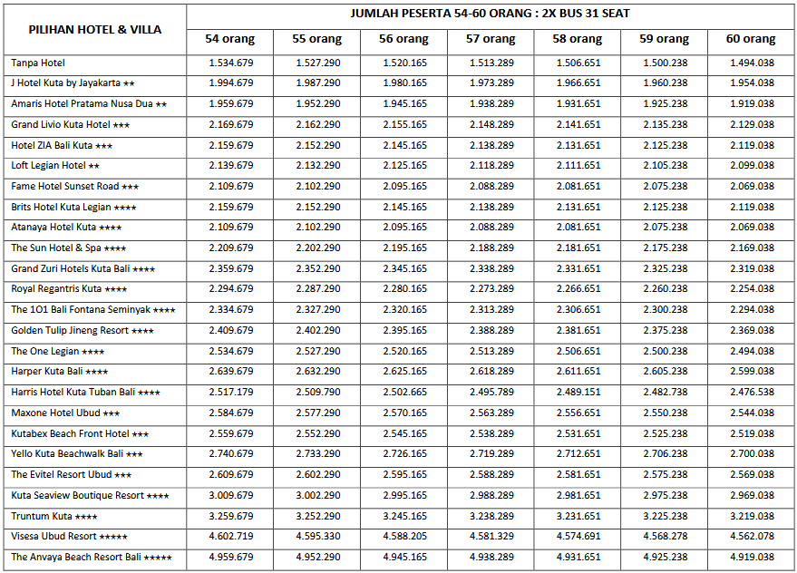 HARGA PEAK SEASON PER ORANG DEWASA