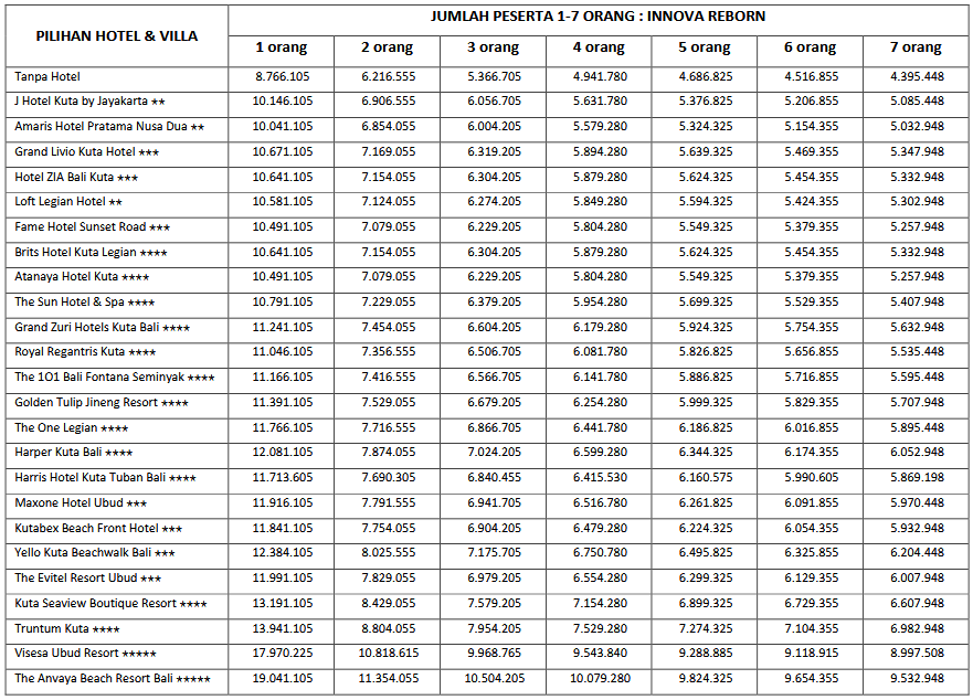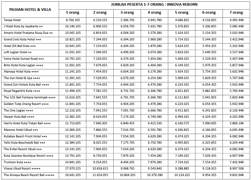 Paket 4H3M B ini cocok di ambil bagi anda, pasangan dan juga keluarga yang ingin mengunjungi Bali karena paket tour ini mencangkupi objek-objek wisata populer yang ada di Bali. Untuk menyesuaikan waktu liburan anda, kami sarankan untuk memesan tiket pesawat dengan jam kedatangan pagi sebelum jam 09.30 WITA dan jam kepulangan sore diatas jam 15.00 WITA.