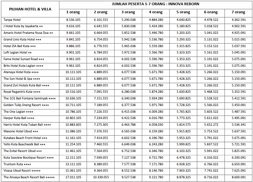 - Supir Merangkap Guide (Minivan, Innova, Elf & Hiace)