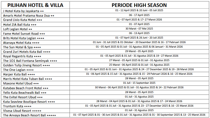 HARGA HIGH SEASON PER ORANG DEWASA
