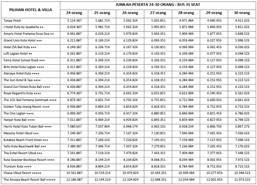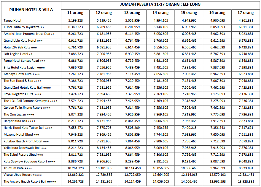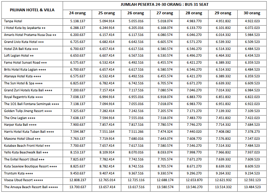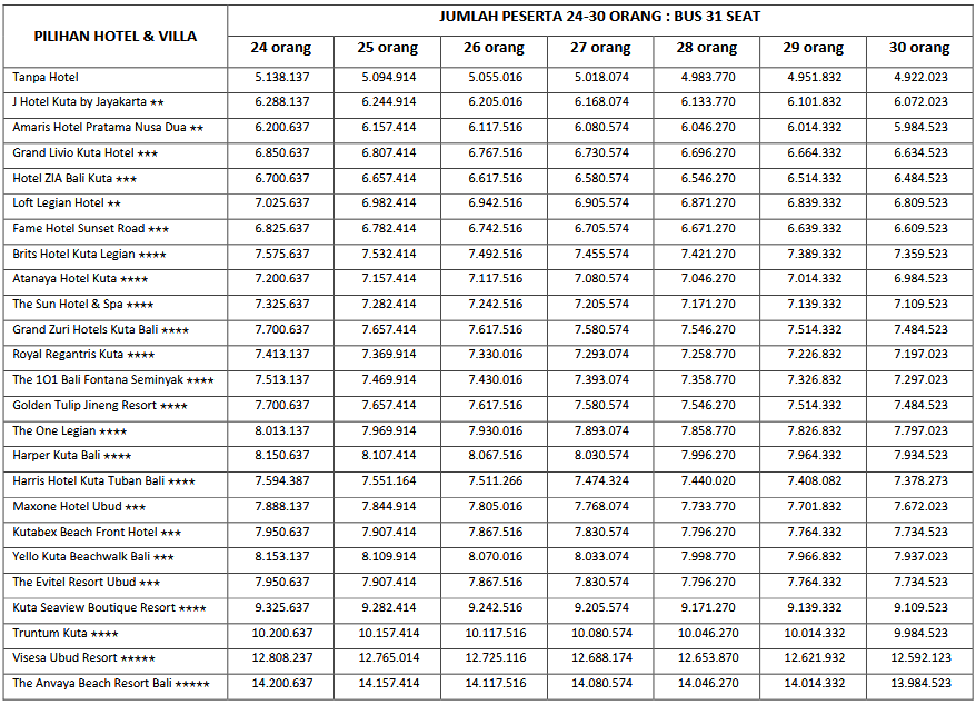 HARGA PEAK SEASON PER ORANG DEWASA