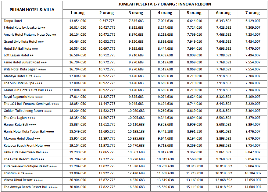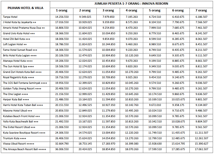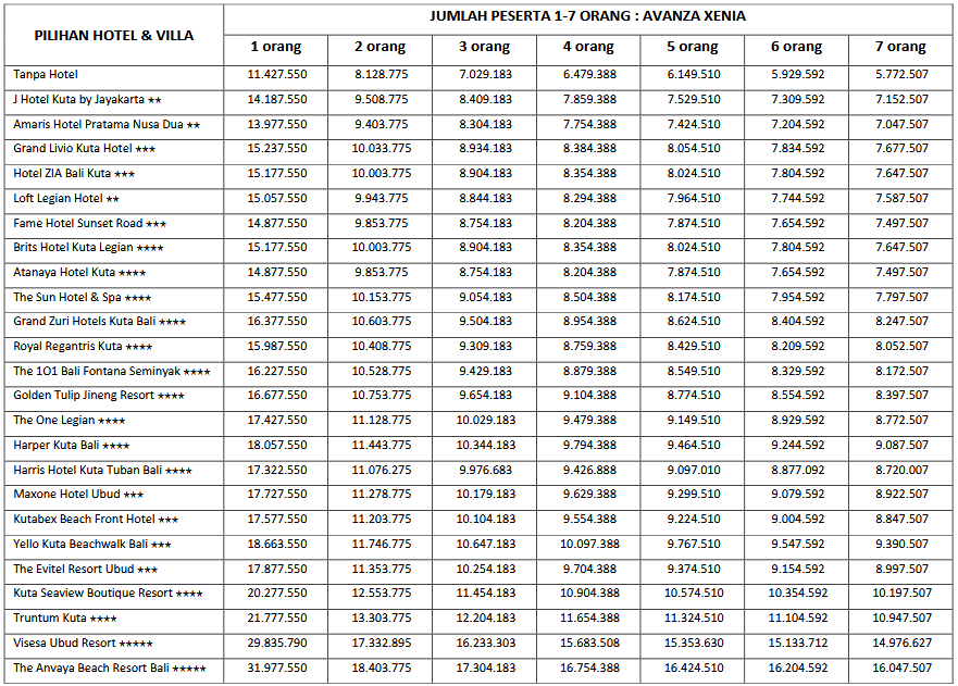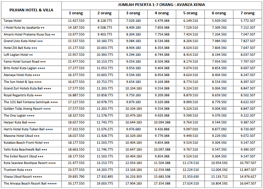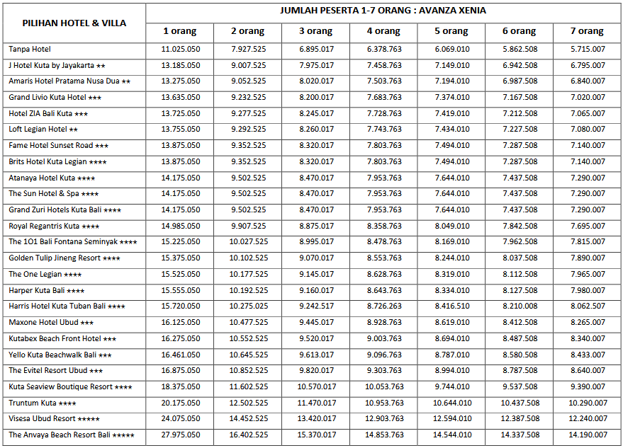 Paket 7H6M A ini cocok di ambil bagi anda, pasangan dan juga keluarga yang ingin mengunjungi Bali karena paket tour ini mencangkupi objek-objek wisata populer yang ada di Bali. Untuk menyesuaikan waktu liburan anda, kami sarankan untuk memesan tiket pesawat dengan jam kedatangan pagi sebelum jam 10.00 WITA dan jam kepulangan sore di atas jam 15.00 WITA.