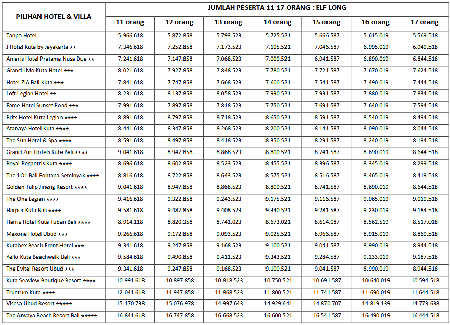 HARGA PEAK SEASON PER ORANG DEWASA