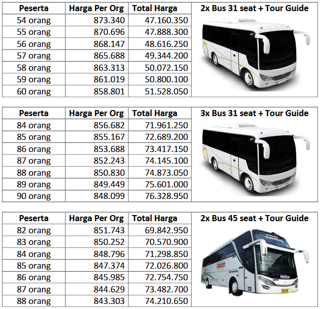 - Tip Supir Merangkap Guide (min. Rp75.000 / hari)