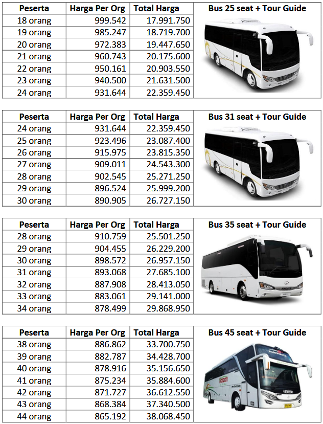 - Tip Supir Merangkap Guide (min. Rp75.000 / hari)