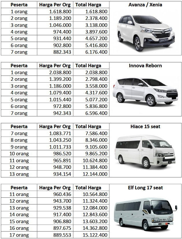 - Supir Merangkap Guide (Minivan, Innova, Elf & Hiace)