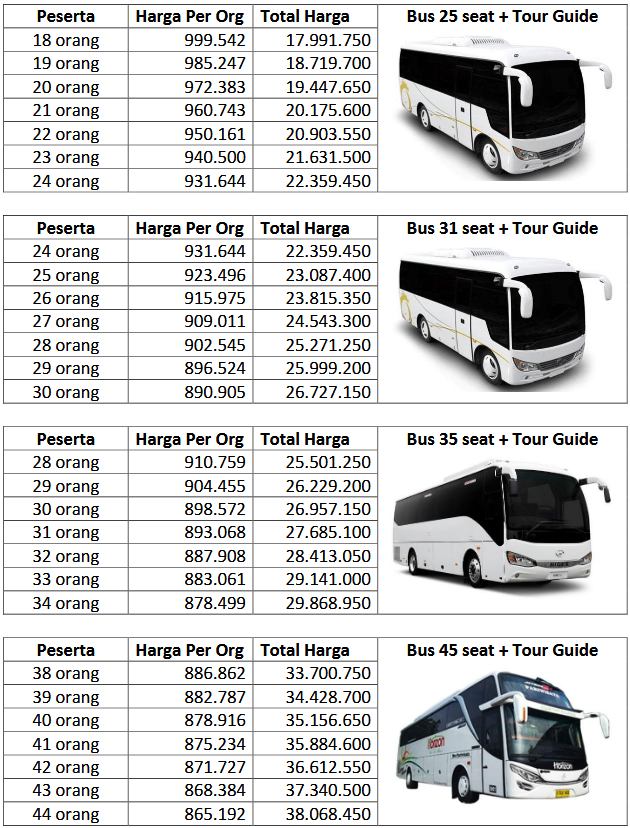 - Tip Supir Merangkap Guide (min. Rp75.000 / hari)
