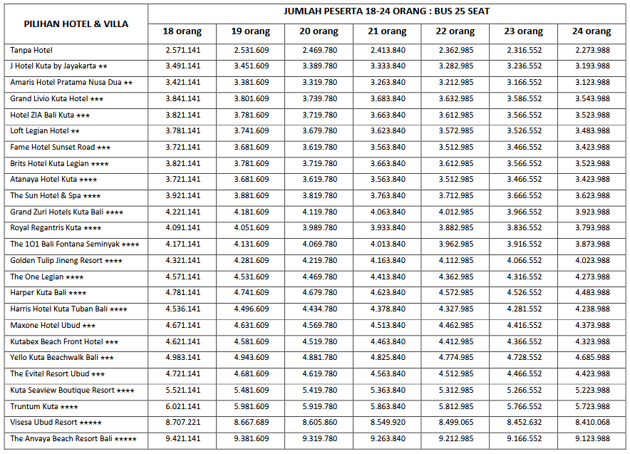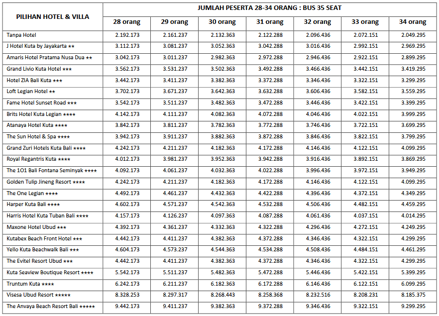 HARGA NORMAL SEASON PER ORANG DEWASA
